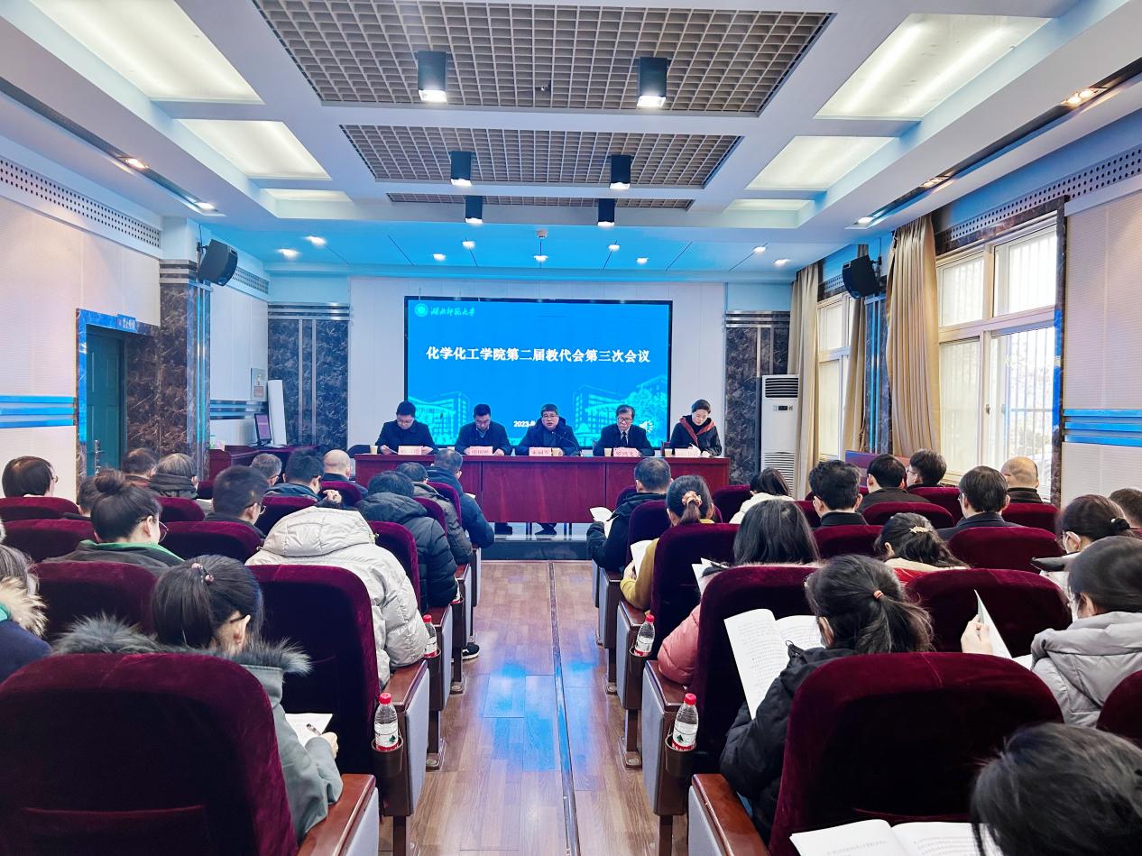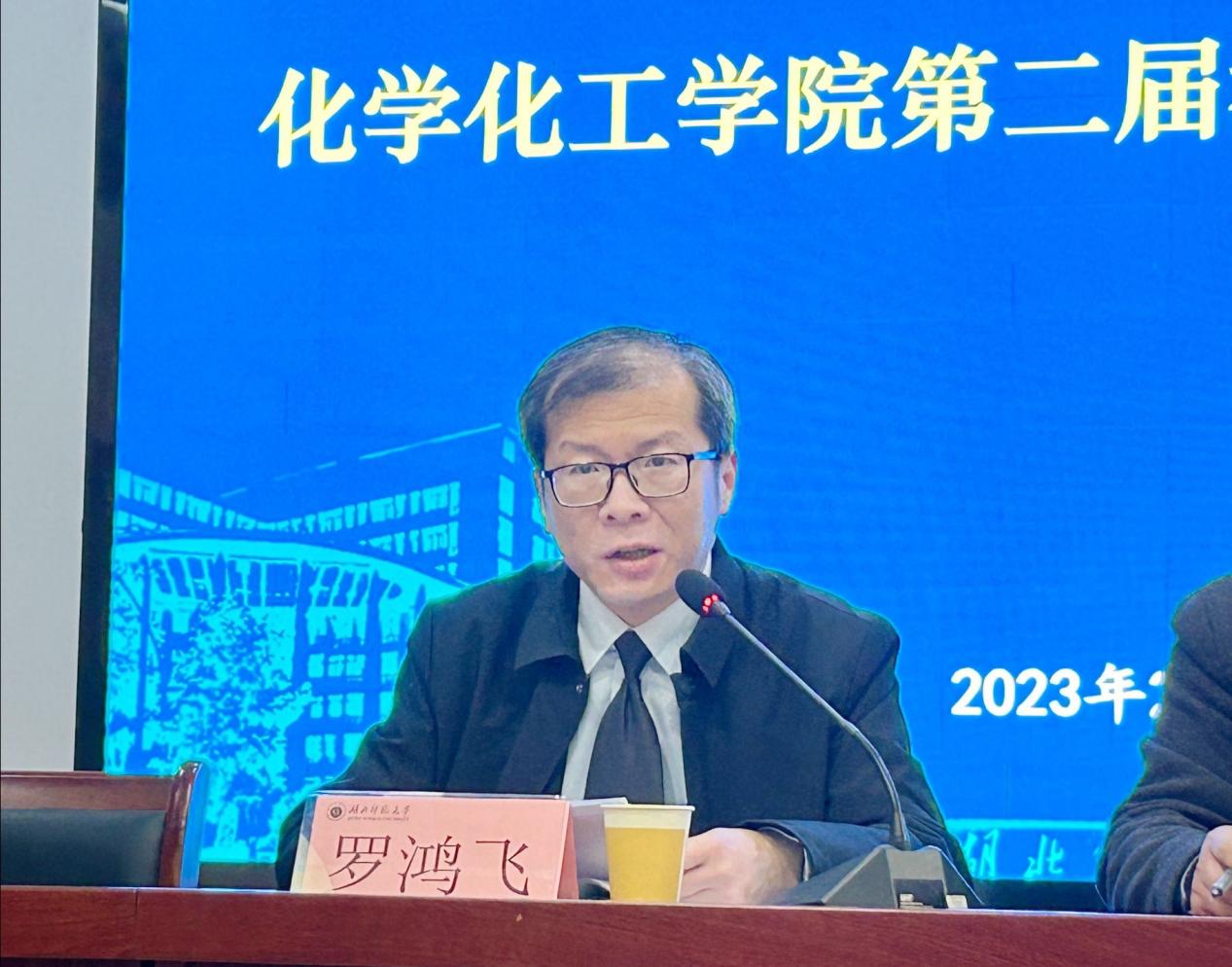 在圆满完成会议各项议程后,罗鸿飞书记发表讲话。他对全体教职工在过去一年的辛勤付出表示衷心感谢,对学院当前面临的形势和存在的不足进行了深入剖析,对提交会议审议的五项制度推出的必要性和预期效果进行了逐条解析。他强调,学院正站在一个十分关键的发展节点,要清醒认识到自身存在的不足,更要团结一心、直面挑战,拿出针对性措施补齐自身短板、做强自身优势。他重点就人才引进、实验楼建设、科研全面突破、专硕点申报四项工作,对今年的工作提出了目标和要求,号召全院师生发扬学经理期形成的“自立自强、追求卓越”光荣传统,踔厉奋发、勇毅前行,为实现全年工作目标、迎接建校五十周年、实现高质量内涵式发展做出化院人新的更大贡献。