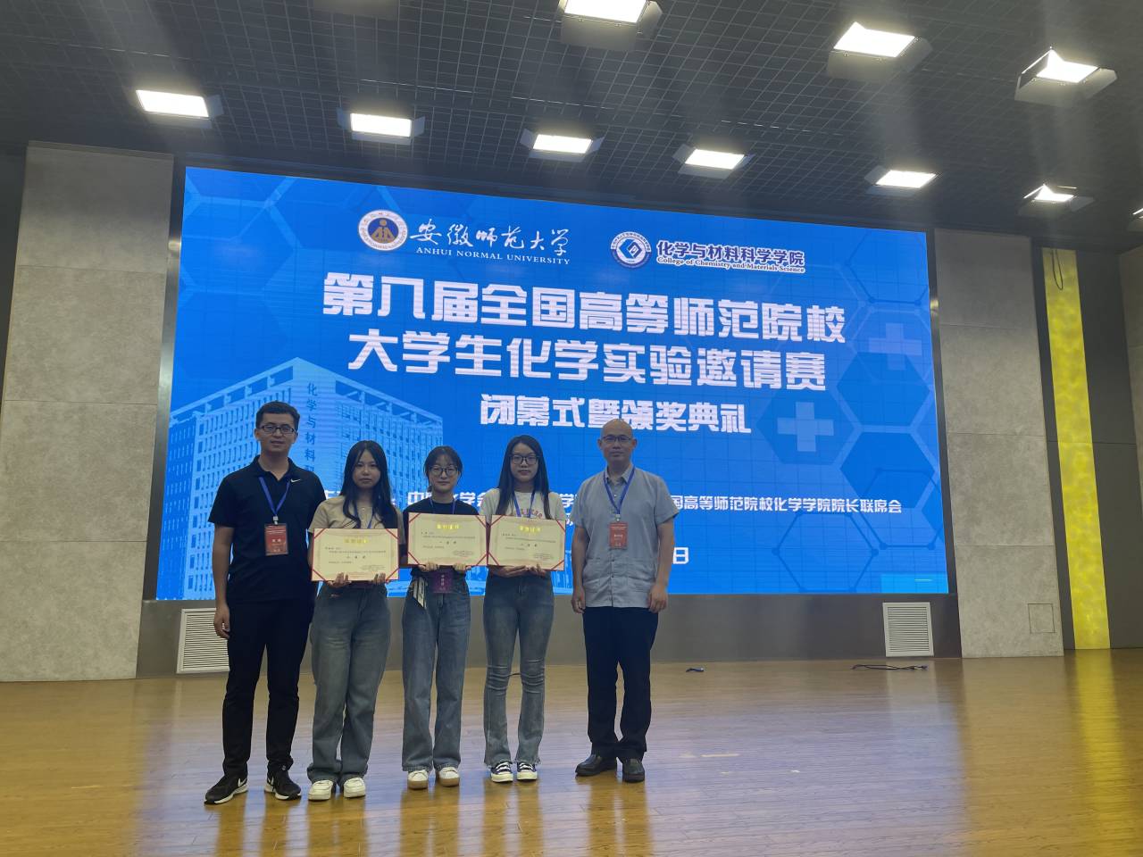 全国高等师范院校老员工化学实验邀请赛由中国化学会化学教育学科委员会和全国高等师范院校化学学院经理联席会联合主办,旨在检验近年来师范院校化学实验教学成效和成果,提高本科生实践能力与科学素质,同时总结交流实验教学改革与实验室建设经验。来自全国44所师范大学的300余名师生参加。为做好本次赛事培训工作,我院成立了李新、孙娟、尹苗苗、李小云等四位博士组成的竞赛指导教师团队,赛前精心培训参赛选手。经过两天激烈的实验操作与实验理论竞赛,代表公司参赛的2004班王哲同学荣获一等奖,2002班张雨田同学和2004班邝依琳同学荣获二等奖。