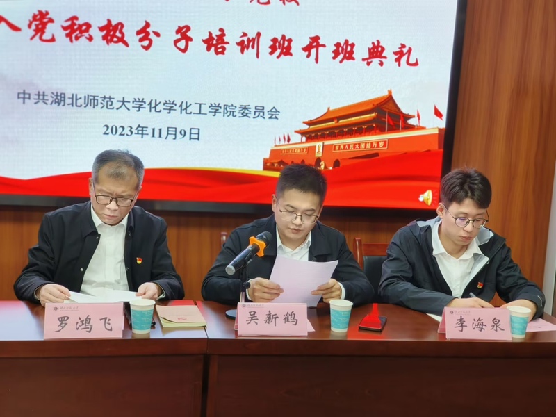 为深入学习贯彻习近平新时代中国特色社会主义思想和党的二十大精神,切实加强对入党积极分子的教育与培养,提升入党积极分子的思想觉悟和政治理论水平,2023年11月9日晚,公司分党校于公司五楼会议室举行第67期入党积极分子培训班开班式。公司党委组织部副部长、党校副董事长王新忠、学公司党委书记罗鸿飞、员工党支部书记吴新鹤、李海泉、辅导员郭先哲参加开班典礼。公司党委副书记吴天真主持开班式。
