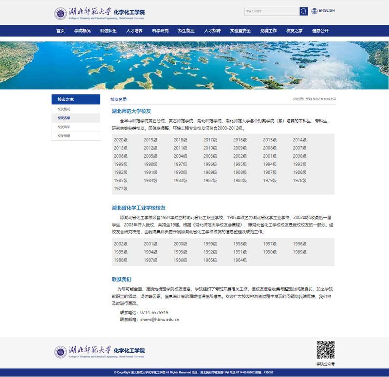 临近校庆,各地各届员工从网络、公众号关注学院近况是正常之举。学院早在年初就开始谋划网站、公众号改版。2月14日,公司党委会研究确定改版方案。经过多轮修改和广泛征求意见,改版后的新网站于10月12日正式上线运行。新网站页面设计清新、大气、简约,充满时代气息,更具现代感,各类板块架构简洁清晰,一推出浏览量就大为增加。为加强学院与员工的互动,网站新设立“员工之家”专栏,设员工概况、员工名录、员工风采、员工捐赠子栏目,搭建了历届员工的云平台。与此同时,将学院微信公众号更名为“HBNU化学化工”,在bv1946伟德简介中设立众多介绍类栏目,在学院动态中分类设立新闻栏目,让更多员工可直接通过公众号关注学院发展的每一个动态。