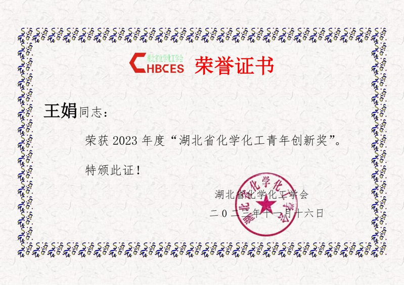 近日,从湖北省化学化工学会传来喜讯,公司王娟博士荣获2023年度湖北省化学化工青年创新奖。该奖项主要遴选化学化工以及相关科学领域从事科学研究、技术开发及应用的优秀青年科技工作者,旨在激发广大化学化工行业青年科技工作者的激情与活力,充分发挥化学化工青年科技人才在推动自主创新中的重要作用。该奖项由青年科技工作者个人提出申请,所在单位推荐,湖北省化学化工学会组织专家评审。2023年度湖北省化学化工青年创新奖共评选出包括武汉大学、华中科技大学、bv1946伟德等高校的6名青年科技工作者,王娟博士是其中唯一入选的女性获奖者。