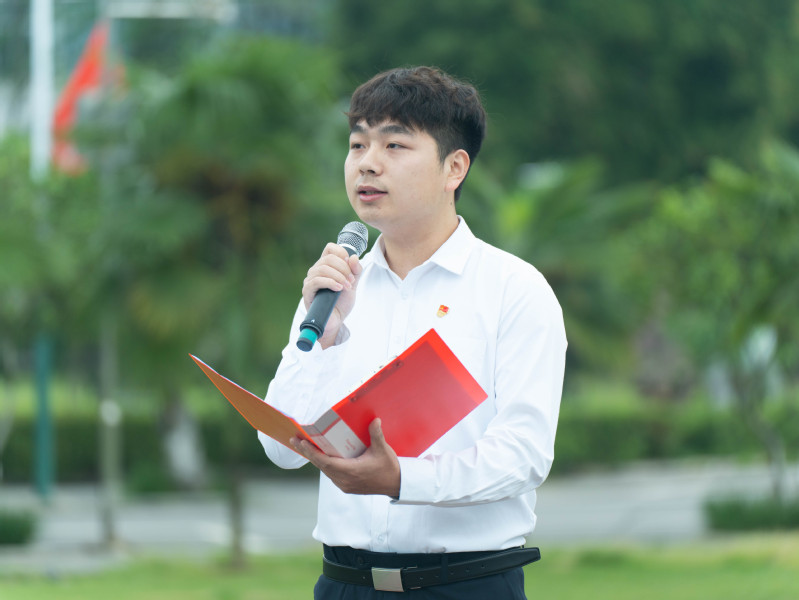 员工代表深情朗诵《党旗下,勇担青春梦想与荣光》,饱含着对党和祖国热烈而真挚的爱,表达了当代青年传承五四精神的坚定信念。