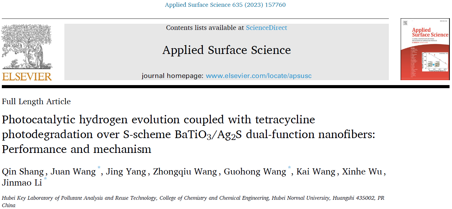 利用太阳能析氢耦合降解污染物是一种解决环境污染和能源短缺非常有效的战略。研究通过静电纺丝和水热法制备新型双功能BaTiO3/Ag2S S型纳米纤维,用于高效光催化析氢耦合污染物降解。优化后的BaTiO3/Ag2S S型复合纳米纤维的光催化析氢性能为133 μmol·h-1·g-1,同时在3 h内耦合降解57.9%的四环素。密度泛函理论计算和实验结果证明了BaTiO3/Ag2S体系遵循S型电子转移机制,显著地促进了载流子分离。因此,工作为设计高效双功能光催化剂提供一些有用的提示。该成果于20236月发表于中科院SCI大类一区期刊Applied Surface ScienceIF6.7,2020级硕士研究生商琴为论文第一作者,王娟副教授、王国宏教授和李金懋博士为论文共同通讯作者,bv1946伟德为论文唯一通讯单位。