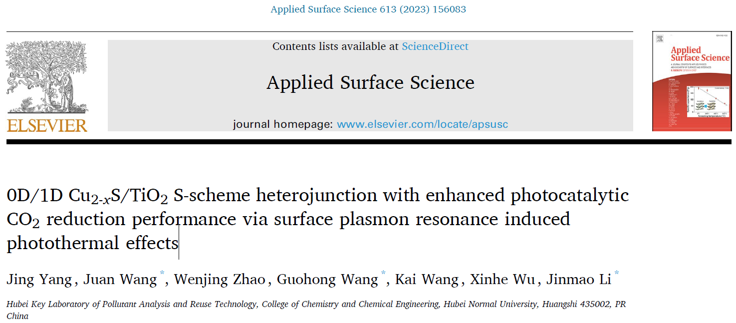 [成果3] 表面等离子体共振效应0D/1D Cu2-xS/TiO2 S型异质结光热协同催化CO2还原