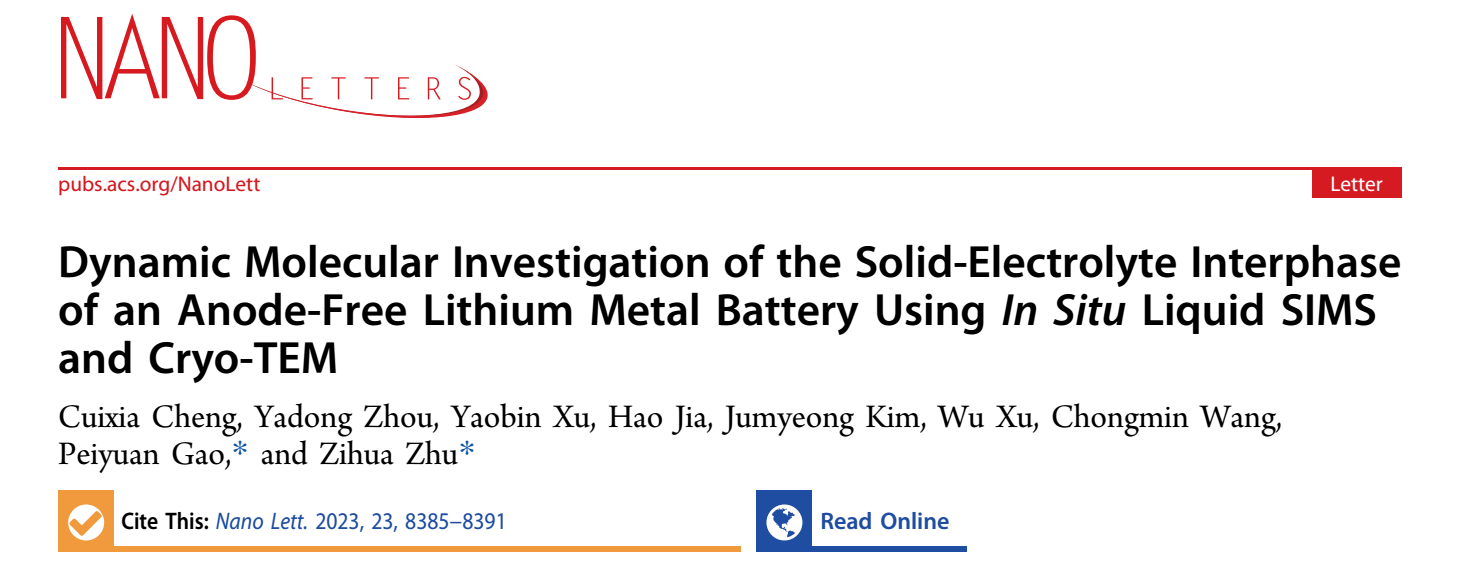 【成果14】利用原位质谱和冷冻电镜对锂离子电池的非锂金属阳极-电解质界面进行动态分子研究