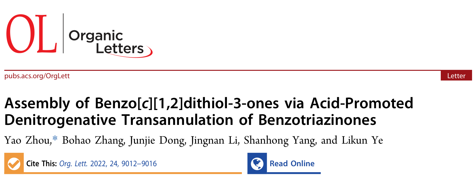 氮杂环的脱氮环化反应可以为复杂药物分子及天然产物的合成提供了强大的合成策略。目前苯并三嗪酮的活化主要依赖于过渡金属催化,无金属催化苯并三嗪酮的脱氮气反应极其罕见,简单的酸或碱促进苯并三秦酮的脱氮气开环反应仍然有待开发。基于此,该研究开发了乙酸促进苯并三嗪酮的“断裂-脱除-环化”反应。相比于链状对称或非对称的二硫化合物,环状二硫化合物的构建仍然具有一定的合成挑战性。该研究在无过渡金属的条件下,实现了环状S-S键的形成,为苯并二磺酚酮的构建提供了全新的合成路线。该成果于202212月发表于中科院SCI大类一区、自然指数期刊Organic LettersIF5.2,周耀副教授为论文第一作者及通讯作者,bv1946伟德为论文唯一通讯单位。