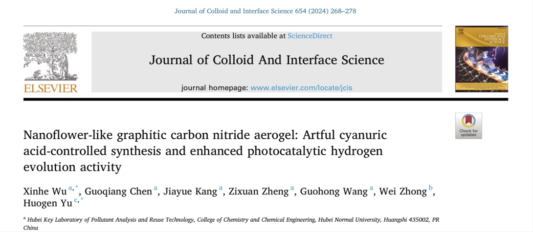 [成果20] 三聚氰酸调控合成纳米花状石墨相氮化碳气凝胶及其光催化分解水制氢性能研究