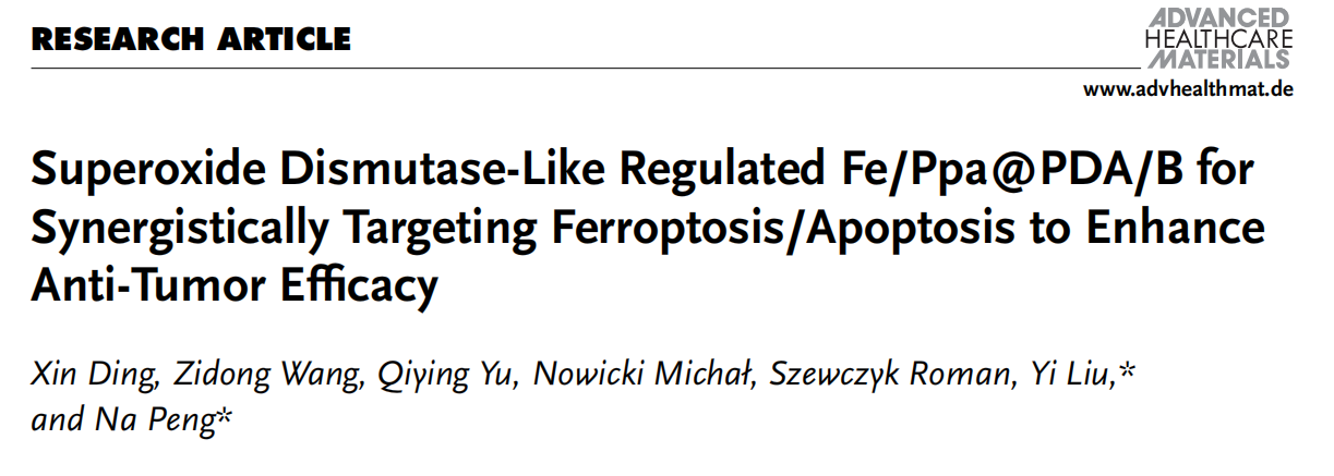 [成果25] 超氧化物歧化酶样调控Fe/Ppa@PDA/B协同靶向铁死亡/细胞凋亡,提高抗肿瘤疗效