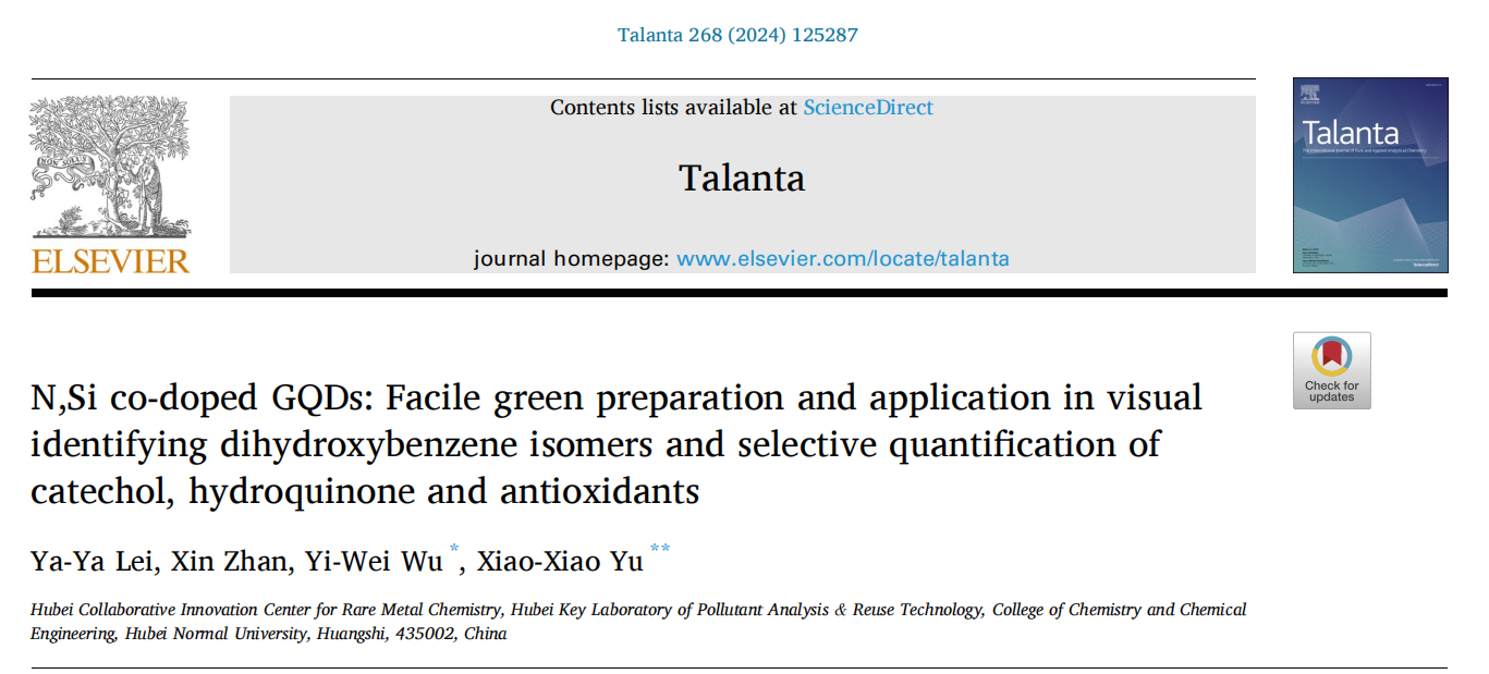 [成果19] 氮、硅共掺杂石墨烯量子点:绿色制备及应用在视觉识别二羟基苯异构体和邻苯二酚、对苯二酚和抗氧化剂的选择性定量