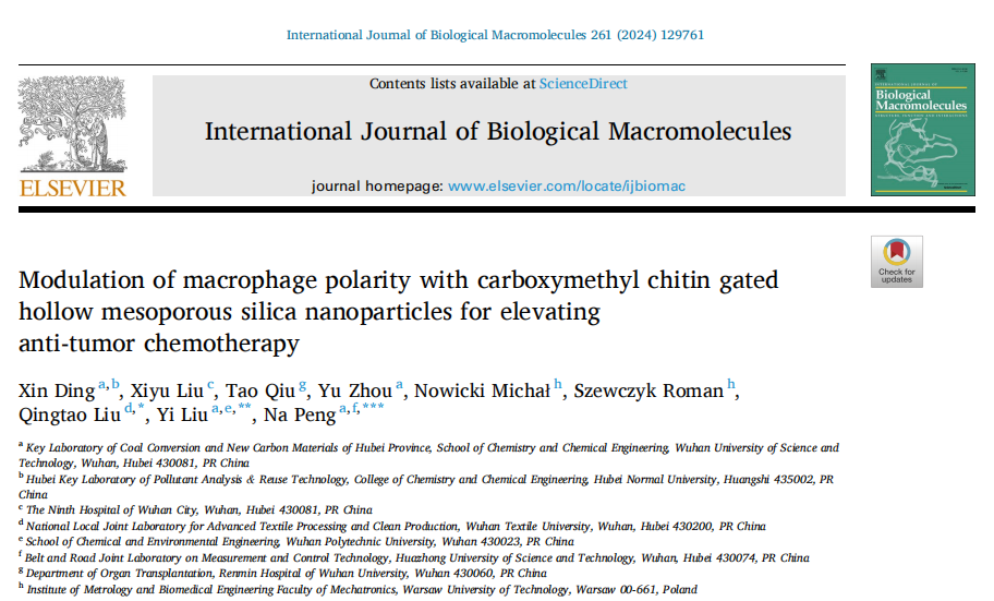 日前,国际知名期刊International Journal of Biological Macromolecules(《国际生物大分子》)发表了公司丁鑫博士在生物化学领域的最新研究成果。论文题为“Modulation of macrophage polarity with carboxymethyl chitin gated hollow mesoporous silica nanoparticles for elevating anti-tumor chemotherapy”(羧甲基甲壳素门控的中空介孔二氧化硅纳米颗粒调节巨噬细胞极化提高抗肿瘤化疗)。丁鑫博士为论文第一作者,武汉科技大学刘义教授和彭娜教授为共同通讯作者,武汉科技大学、bv1946伟德分别为论文第一、第二通讯单位。International Journal of Biological Macromolecules是一本公认的研究所有天然大分子的化学和生物方面的国际杂志,中科院SCI化学大类一区,最新影响因子为8.2。
