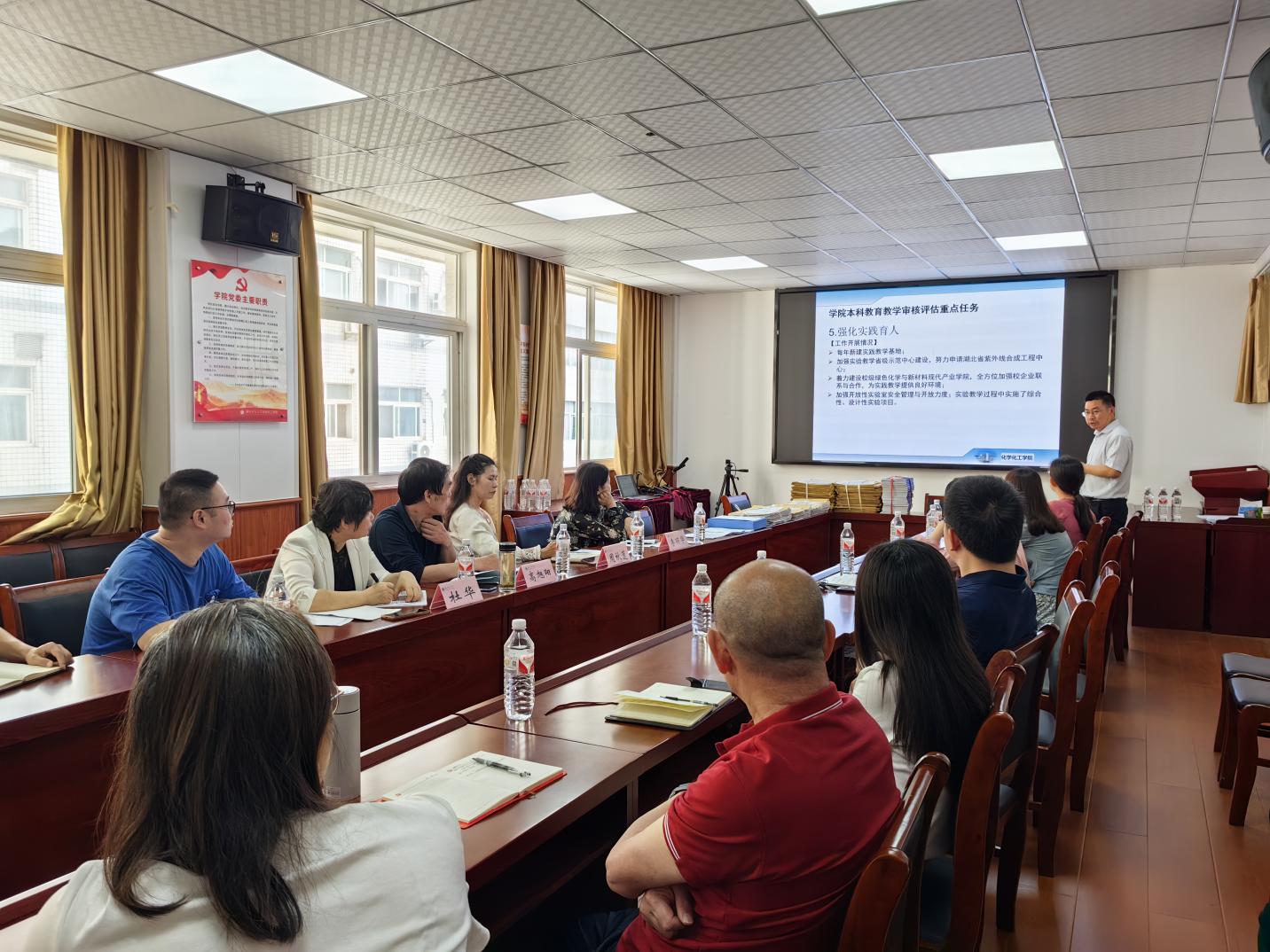 经理殷国栋从严格教学质量监控、多措并举提高人才培养质量、毕业论文工作、化学国家一流本科专业建设、绿色化工与新材料现代产业学院建设、“优师计划”班级建设、审核评估评建整改、学业预警与帮扶等教学日常运行进行了汇报。