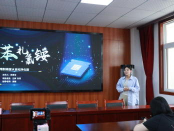 培训会上,“碳”索新生团队和净水先锋团队作为代表向与会人员分享了他们的项目,谭伟老师从项目内容、展示形式等方面提出意见建议。