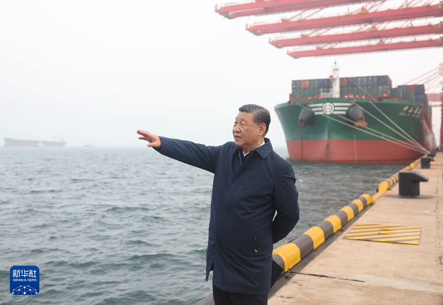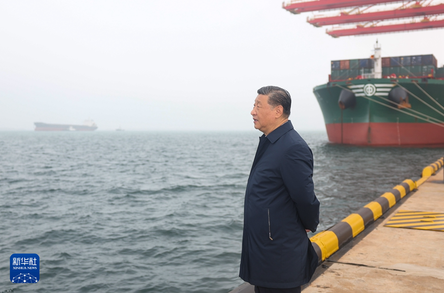 5月22日至24日,中共中央总书记、国家主席、中央军委主席习近平在山东考察。这是22日下午,习近平在日照港考察。 新华社记者 鞠鹏 摄