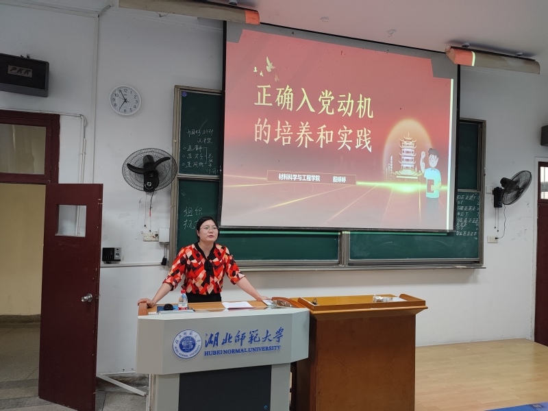 5月27日晚,公司分党校第68期入党积极分子培训班第五讲在教育大楼1J21开讲,材料科学与工程公司党委副书记殷婷婷以《正确入党动机的培养与实践》为题为全体学员授课。她从正确的入党动机是什么、怎样端正入党动机和按照党员标准严格要求自己三个方面进行讲解与解读。