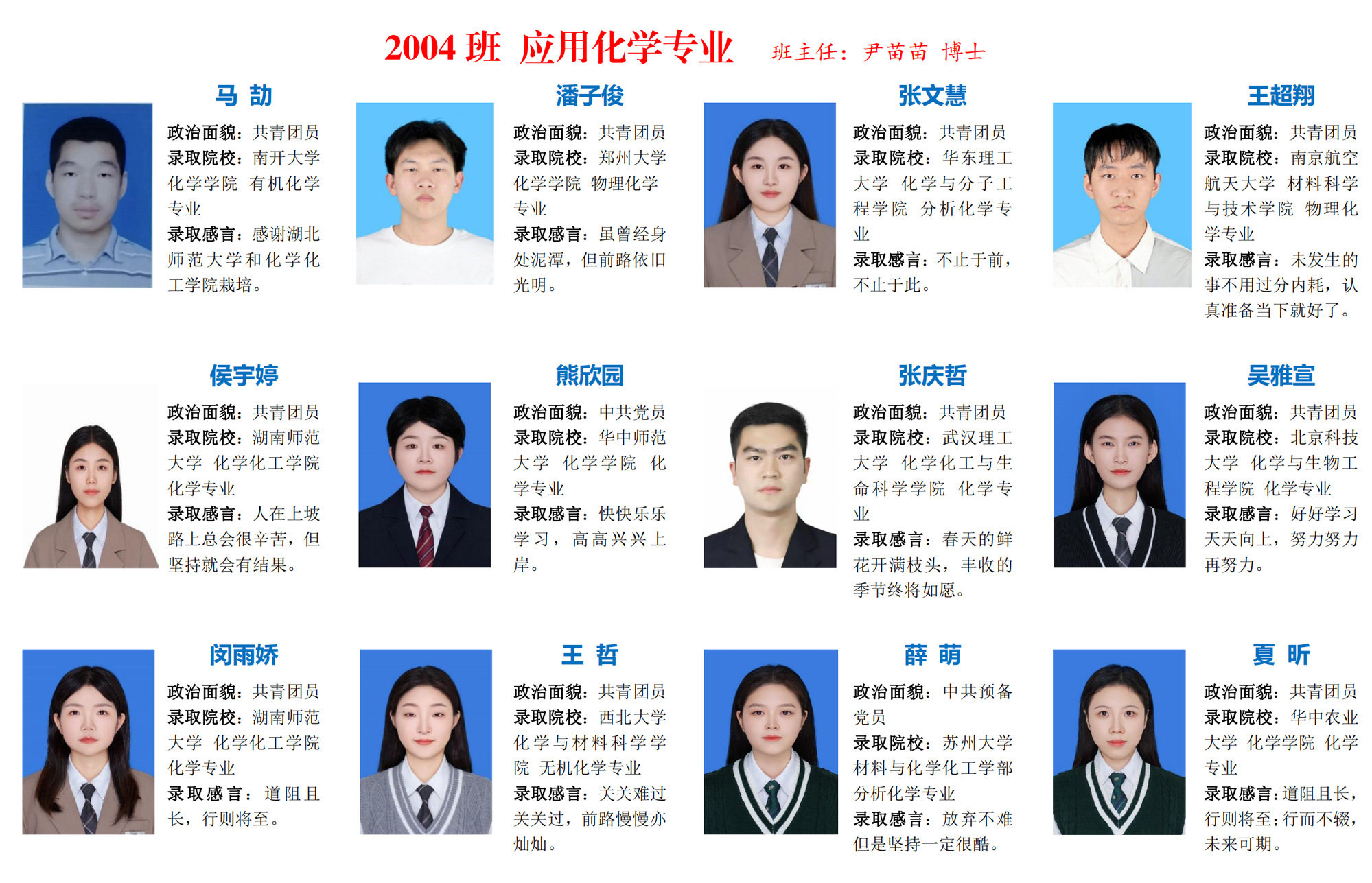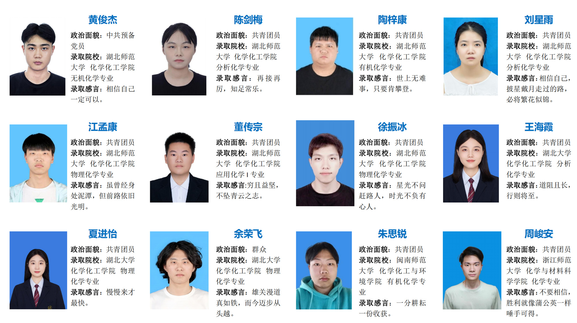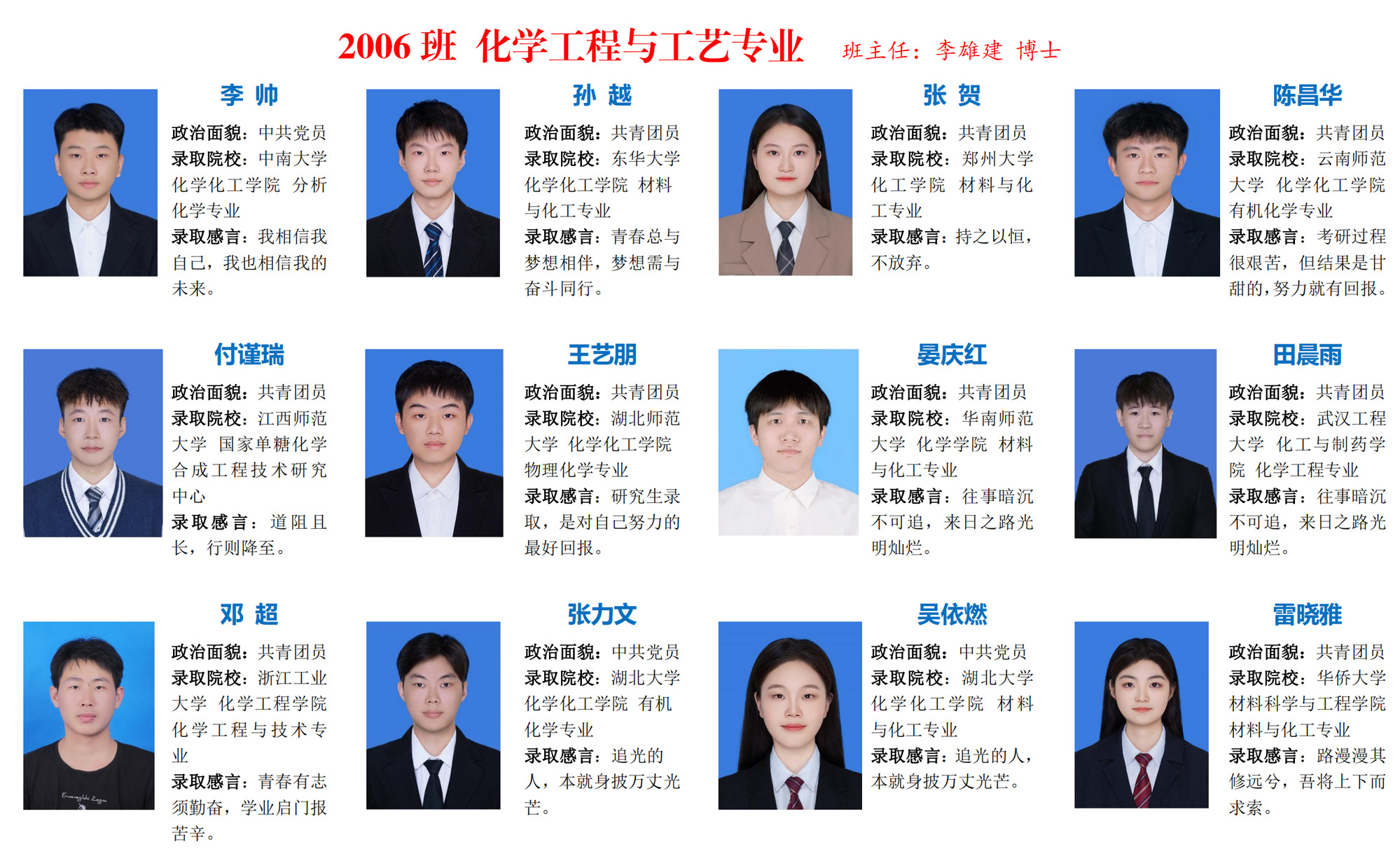 编者按:执笔耕耘梦想,持卷浅吟年华;踏上“研”途,便只顾风雨兼程。这一趟有山重水复,也终见柳暗花明;虽漫长而艰辛,但终有回报之日。公司2024届284名本科毕业生中122人被国内外高校(研究所)录取,升学率达42.96%,创学院考研录取率历史新高。本期推送应用化学、化学工程与工艺专业考研光荣榜,他们从选择考研的那一刻开始,以山河为伴,日月为引,一直以来的努力,迎来了最好的结果。
