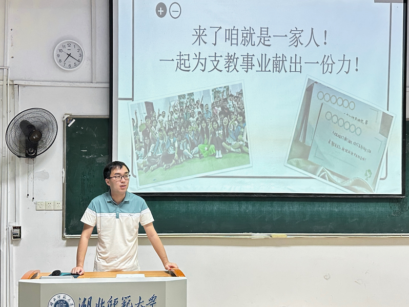 志愿服务部部长许圆向与会同学介绍了公司本次暑期社会实践的方案,即依托中小学校园、社区、乡镇村落和专业实践基地等为主要实践平台,开展党的理论政策宣讲专、基层社区治理、线下支教等专项实践与调研,并组织实践队前往安陆基地开展高质量见习实践。同时鼓励同学们积极申报其他有创意、有想法的项目,主动寻求社会各方资源的关注与支持。外国语学院王冉同学为大家进一步讲解有关暑期支教黄颡口分队的住宿条件、生活环境、开展活动和支教三大特色等相关事宜。