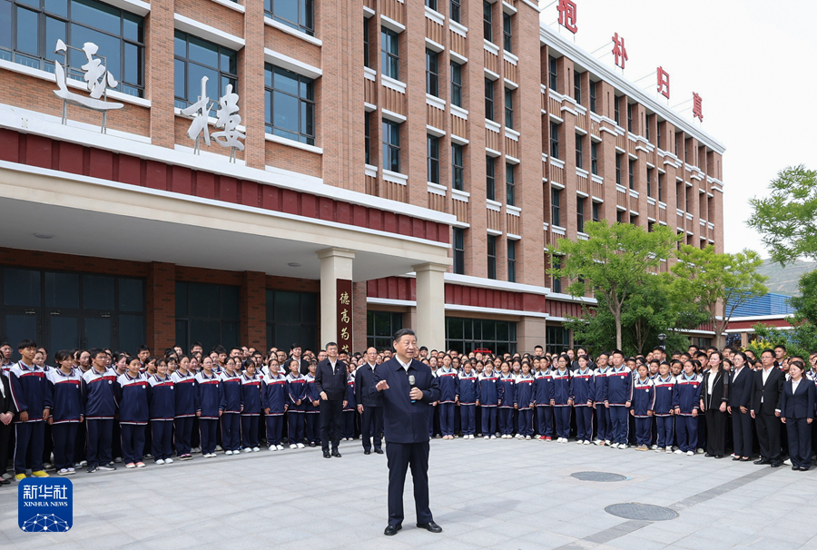 6月18日至19日,中共中央总书记、国家主席、中央军委主席习近平在青海考察。这是18日下午,习近平在果洛西宁民族中学考察时,同师生们亲切交流。新华社记者 鞠鹏 摄