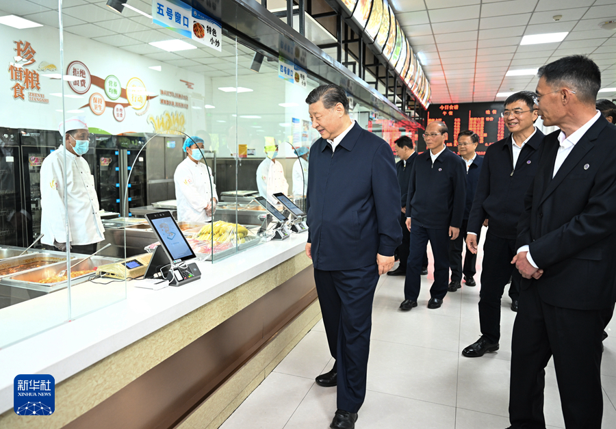 6月18日至19日,中共中央总书记、国家主席、中央军委主席习近平在青海考察。这是18日下午,习近平在果洛西宁民族中学食堂察看员工就餐条件。新华社记者 谢环驰 摄