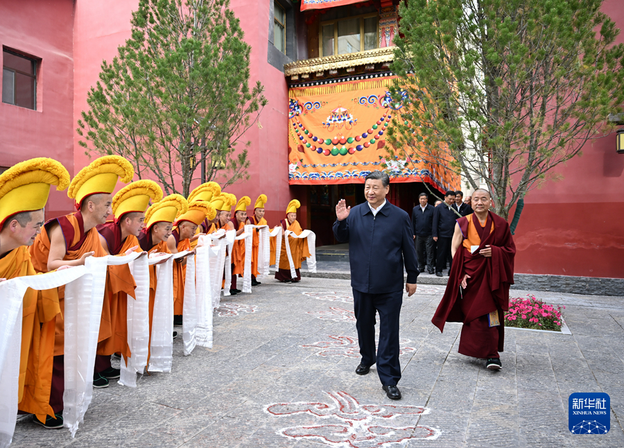 6月18日至19日,中共中央总书记、国家主席、中央军委主席习近平在青海考察。这是18日下午,习近平在位于西宁市城中区的宏觉寺考察。新华社记者 谢环驰 摄