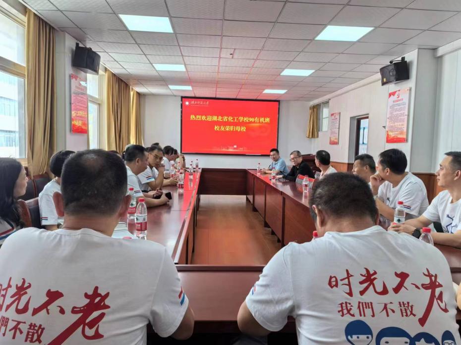 在新中国成立75周年之际,原湖北省化学工业学校1990级有机班、无机(二)班共40余名员工分别于10月2日、6日荣返母校团聚,纪念毕业30周年。公司党委书记罗鸿飞、经理殷国栋、副经理周兴旺,教师代表甘应良、卢莲英、夏新泉、陈芳、程银芳等出席座谈会。沙洋秦江化工有限公司总经理丁勇主持90级有机班员工座谈会,黄石国胜物流公司总经理余香平主持90无机(二)班员工座谈会。