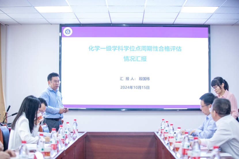 专家评估环节由专家组组长刘义教授主持。经理殷国栋教授从发展历史、培养目标、培养方向、团队队伍、支撑条件、教学管理,以及公司产品成效等方面,向专家组介绍了化学一级学科学位点的建设发展基本情况,以及公司本次周期性合格评估自评工作开展情况。