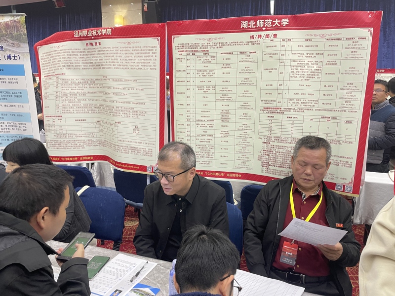 11月18-19日,党委书记罗鸿飞、行政助理李新一行赴武汉市、长沙市招聘博士,与应聘公司的20余名化学、化学工程与技术、材料科学与工程、环境科学与工程等学科博士亲切交流。参加应聘的2024届、2025届博士与学院领导深入了解公司人才招聘政策及学院办学条件、优势学科方向。罗鸿飞、李新耐心回复应聘博士咨询的各项问题,欢迎他们积极参加学院组织的面试并选择到学校就职。