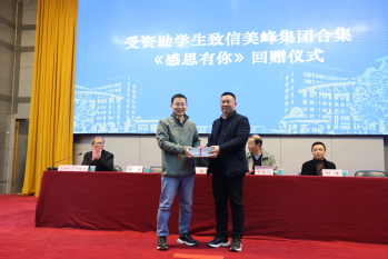 余涛代表学校及全体受助员工对美峰集团表达了真诚的感谢,介绍了学校“三心工程”资助体系的做法和成效,介绍了学院近年来发展取得的成绩。他对全体员工提出三点希望,希望大家自知者明,满怀感恩迎接美好时代;自信者胜,满怀梦想描绘精彩人生;自胜者强,满怀爱心传承奉献品德。