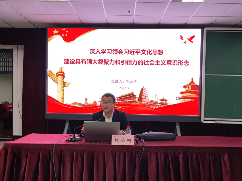 祝治国强调,习近平文化思想深刻回答了新时代我国文化建设举什么旗、走什么路、坚持什么原则、实现什么目标等根本问题,是新时代党领导文化建设实践经验的理论总结,丰富和发展了马克思主义文化理论,构成了习近平新时代中国特色社会主义思想的文化篇,标志着我们党对中国特色社会主义文化建设规律的认识达到了新高度。这一重要思想内涵十分丰富、论述极为深刻,明体达用、体用贯通。需要我们深刻学习领会坚持党的文化领导权、推动物质文明和精神文明协调发展、“两个结合”的根本要求、担负新的文化使命等重要论述。