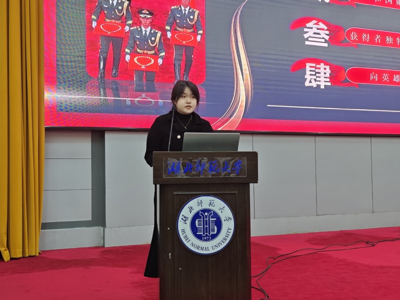 宣讲团成员易研彧以《致敬功勋模范》为题进行宣讲。她介绍到,共和国勋章是中华人民共和国最高荣誉勋章,授予在中国特色社会主义建设和保卫国家中作出巨大贡献、建立卓越功勋的杰出人士,对王永志、王振义、李振声、黄宗德四位“共和国勋章”获得者的生平事迹展开介绍。他们的事迹感人至深,他们展现出卓越的创新精神、彰显出非凡的仁爱之心、体现出踏实勤奋的作风和凸显出果敢坚毅的品质。通过学习模范精神,我们可以更好地领悟道德格局、精神意志和爱国情怀,将个人梦融入强国梦,为实现中华民族伟大复兴的中国梦贡献自己的力量。