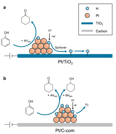 Pt/TiO2和Pt/C-com上苯酚选择性加氢制环己酮机理