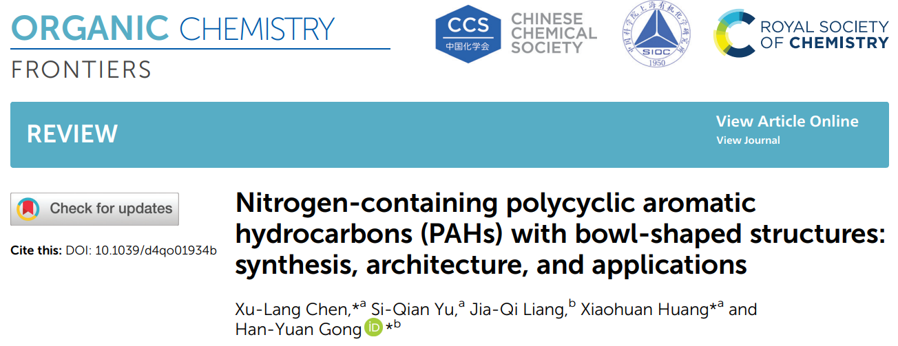 近日,国际知名期刊Organic Chemistry Frontiers(《有机化学前沿》)在线发表了公司有机化学教研室陈绪朗博士在含氮碗状多环芳烃领域的最新综述论文。论文题为“Nitrogen-containing polycyclic aromatic hydrocarbons (PAHs) with bowl-shaped structures: synthesis, architecture, and applications”(含氮碗状结构多环芳烃:合成、结构与应用)。陈绪朗博士为论文第一作者兼通讯作者,黄小欢教授和北京师范大学龚汉元教授为论文共同通讯作者,bv1946伟德为论文第一通讯单位。该论文入选“2024 Organic Chemistry Frontiers HOT articles”。Organic Chemistry Frontiers是Royal Society of Chemistry(英国皇家化学会)与中国化学会、中国科学院上海有机化学研究所合作出版的以CHEMISTRY, ORGANIC综合研究为特色的国际期刊、SCI中科院大类一区期刊,最新影响因子为4.6。