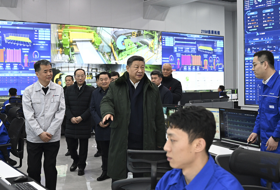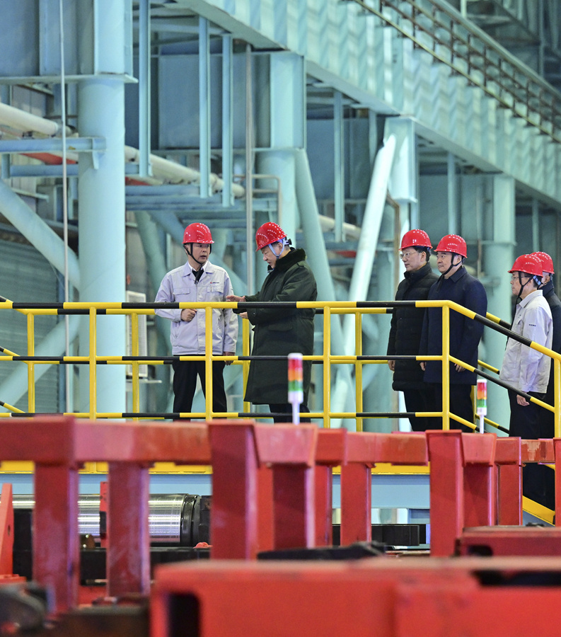 1月22日至24日,中共中央总书记、国家主席、中央军委主席习近平冒着严寒来到辽宁,看望慰问基层干部群众。这是23日下午,习近平在本溪市考察本钢板材冷轧总厂第三冷轧厂车间。新华社记者 谢环驰 摄
