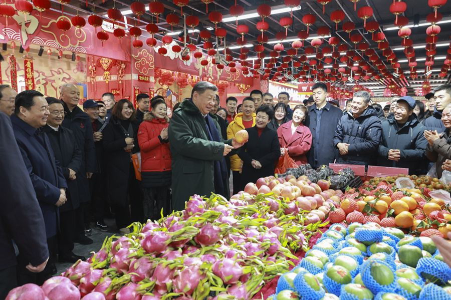 沈阳大东副食品商场历史悠久,富有特色的年节商品琳琅满目。23日上午,习近平来到这里,察看多家店铺,频频同店主和顾客交流,详细了解节日期间市场供应情况。大家见到总书记都十分激动,连声欢呼“总书记好”!习近平对大家说,“菜篮子”、“米袋子”、“果盘子”是民生大事,现在物质丰裕,过年团圆更要让大家吃得好、吃得健康。