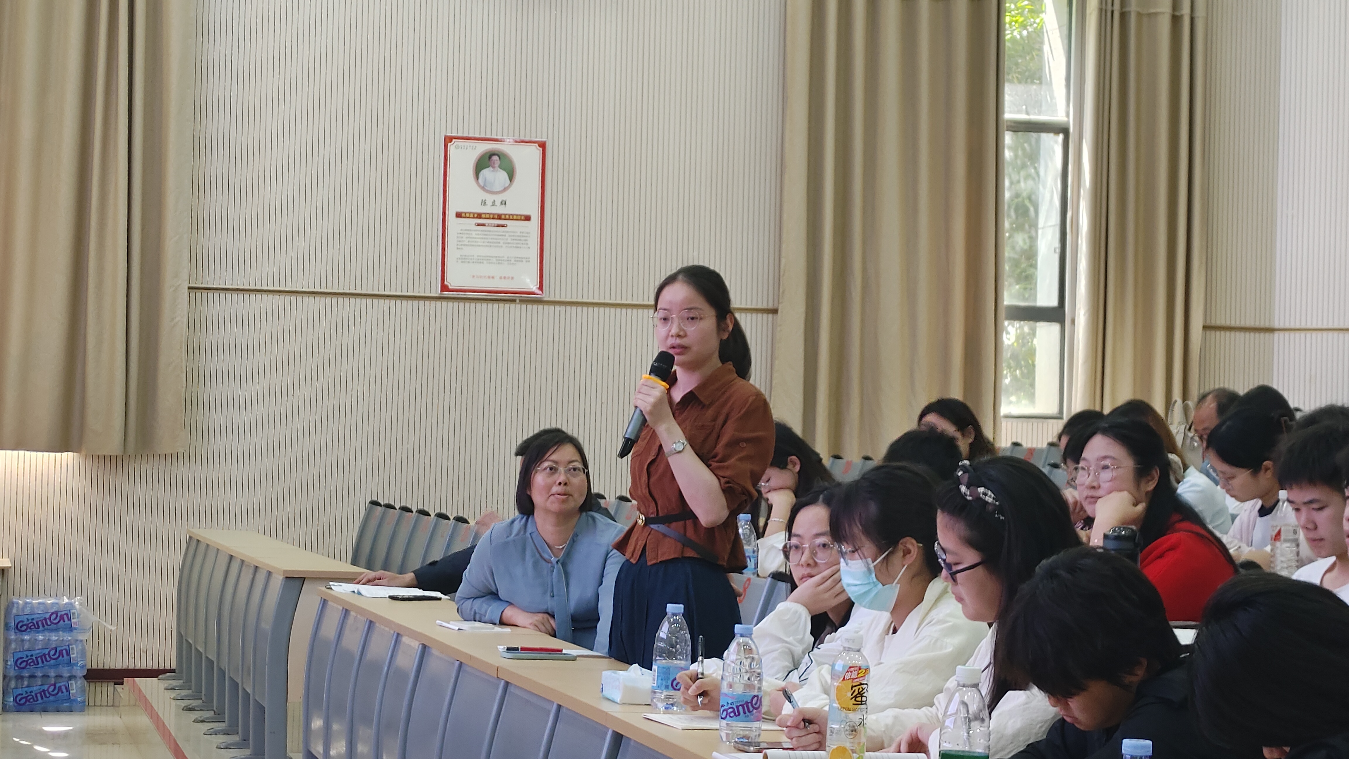 教学展示结束后,思维碰撞的火花继续在现场绽放。2022级化学(优师班)员工积极提问,现场专家老师从课堂教学的各个层面耐心解答。随后,专家老师们各抒己见,对两位老师的课堂进行了细致入微的评课。最后,主讲人杨彩云老师进行总结评价,充分肯定了两堂课的优秀之处。两节课都遵循预测性质、实验验证、归根表征的教学流程,与深度学习模型高度契合,且各具亮点。