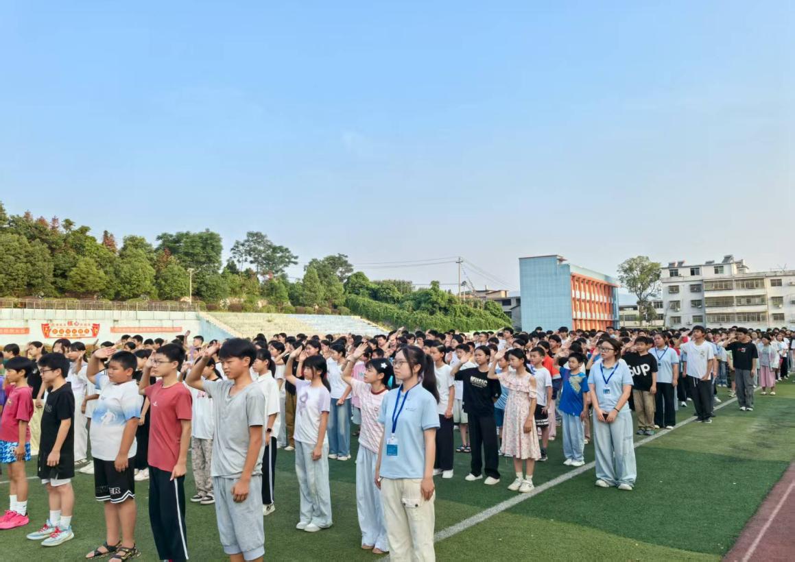 在升旗仪式上,实践队员们将暑期防溺水安全作为重中之重。伴随着朝阳升起,队员龙一涵担任主持人,八年级员工代表袁锶涵进行“珍爱生命,预防溺水”主题演讲,稚嫩却坚定的声音传递出守护生命的责任。随后,作为班主任代表的队员张琪结合员工们的暑期生活特点,细致地提出了学习与安全方面的要求。排市中学董事长明锐结合近期案例,讲解野外游泳的危害,向员工们再次强调提高安全意识,远离危险水域。