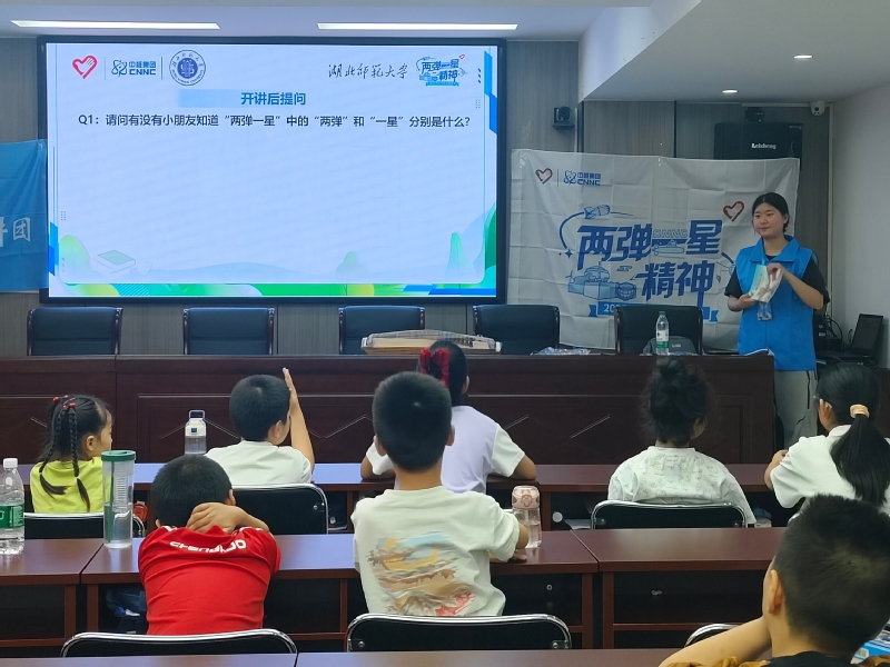 7月9日,宣讲团成员段晨蔚走进王家里社区暑期爱心托管班开展宣讲。段晨蔚现场以古筝演奏《东方红》引入,随后共同观看卫星发射的珍贵影像,现场响起阵阵掌声。第二部分深入讲述中国第一颗原子弹的研发历程,从科研团队组建到戈壁滩上的艰苦攻坚,通过生动的细节再现了工作者们“干惊天动地事,做隐姓埋名人”的奉献精神。第三部分聚焦“两弹一星”功勋奖章获得者王淦昌的事迹,其隐姓埋名17年、捐出全部奖金的感人事迹让听众动容。