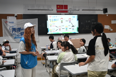 7月12日,宣讲团成员段晨蔚、杨银涛走进浠水县兰溪方铺小学,为一至六年级员工带来一堂生动的思政课与科普课。段晨蔚现场以古筝演奏《东方红》引入,随后共同观看卫星发射的珍贵影像,详细讲述中国第一颗原子弹的研制历程,从科研团队组建到戈壁滩上的艰苦奋斗,结合“两弹一星”功勋奖章获得者王淦昌的事迹,生动展现了科研工作者和参试部队“干惊天动地事,做隐姓埋名人”的崇高精神。杨银涛从核技术的基础原理讲起,用“太阳为什么能一直发光发热”“原子弹为什么有那么大威力”等问题开篇,重点讲解了核技术在生活中的“隐形身影”,并结合孩子们熟悉的场景举例,让抽象的技术变得可感可知。面对“核技术会不会有危险”的疑问,他用“就像用电一样,只要规范使用就很安全”的比喻耐心解答。
