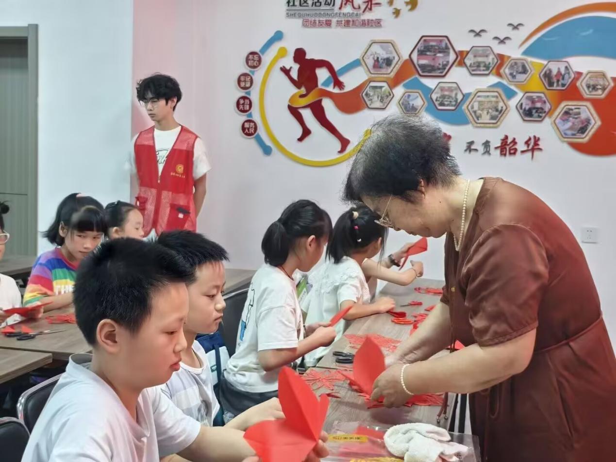 学习剪纸,弘扬传统。剪纸艺人张师傅带着红纸和剪刀走进了爱心托管班,她教孩子们学剪纸,让大家近距离接触这项传统手艺。张师傅先给孩子们展示了几幅自己的作品,有福字、花鸟,还有简单的卡通图案。“剪纸不难,先从直线和圆圈练起。”她一边说,一边拿起红纸对折,示范怎么剪出对称的图案。志愿者和孩子们围坐成一圈,跟着她的步骤折纸、画样、下剪。刚开始,有的孩子剪刀用不好,剪出来的线条歪歪扭扭,志愿者便手把手教孩子们如何剪,让孩子们在剪纸中体会到深深的乐趣。