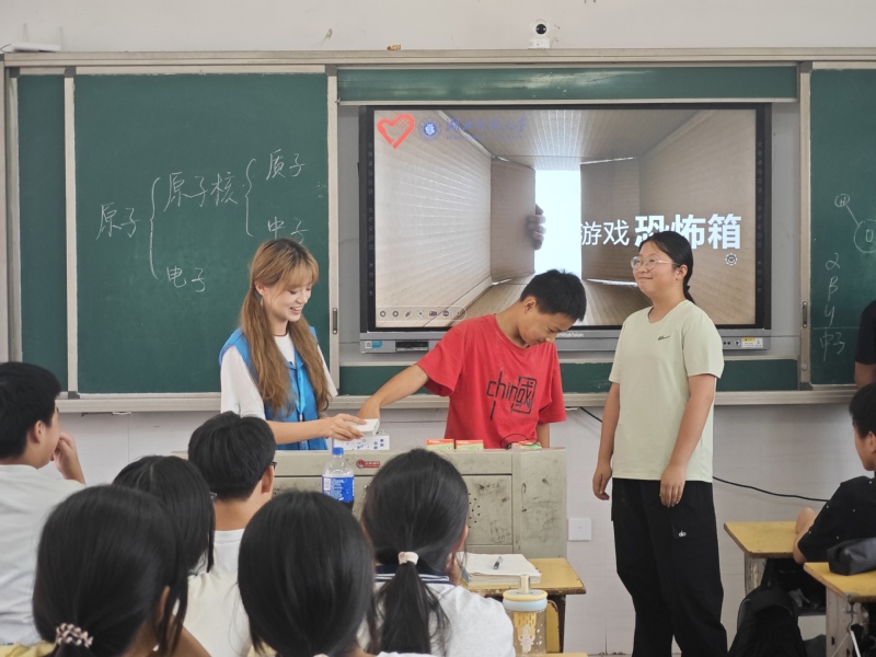 核辐射是科普的重点,也是难点。王宇欣在多个社区和学校,都用“能量粒子的旅行”作比喻:“辐射就是很小的粒子在跑,阳光、土壤里都有,就像空气一样普遍。”在浠水县华桂中学,她展示辐射防护“三板斧”:“离得远一点、挡一下、时间短一点,就像躲太阳用遮阳伞一样。”