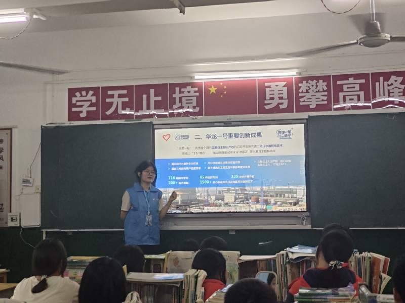在宣讲中,屠董婷既生动阐释“四个一切”核工业精神、新时代核工业精神及重大工程精神,也清晰向孩子们展现这些精神为中国核能锻造硬核实力提供了不竭动力,而中国核能在全球能源领域的担当与贡献,正是这些精神在实践中绽放的时代光彩!