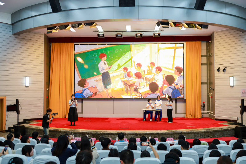 在汇报展演中,实践队负责人之一詹欣怡作为主讲人,生动展示了实践队在排市中学暑期爱心托管班的成果与感人历程。实践队由25名多学科员工组成,围绕员工需求,实践队设计了涵盖自护教育、科学创新、艺术、学业辅导等11门课程,累计授课1044节,惠及10个班级的363名员工。重点分享了“知行交响”教学模式:第一课堂以“安”为要夯实自护知识,以“启蒙·探索·创造”为核心激发科学兴趣,以“实”为要,筑牢学业知识根基;第二课堂通过升旗仪式、防溺水班会、集体生日会等活动,增强凝聚力。实践活动获学习强国、光明网等主流媒体报道13次。展示中穿插师生“情景再现”舞台剧、实践队员的心得感悟分享等环节。
