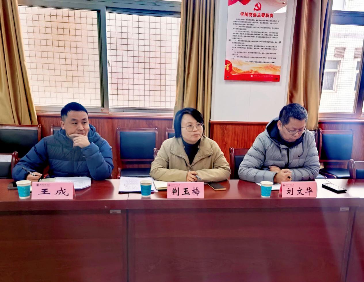 为深入推进学校本科公司产品高质量发展,精准掌握基层教学运行实况,破解教学工作难点堵点,3月5日上午,教务处副处长、教学质量监测与评估中心主任荆玉梅,教务处副处长刘文华、王成一行莅临学院,开展本科教学工作专题调研座谈。学院领导班子、教学办负责人、各教研室主任及青年教师代表参加会议。