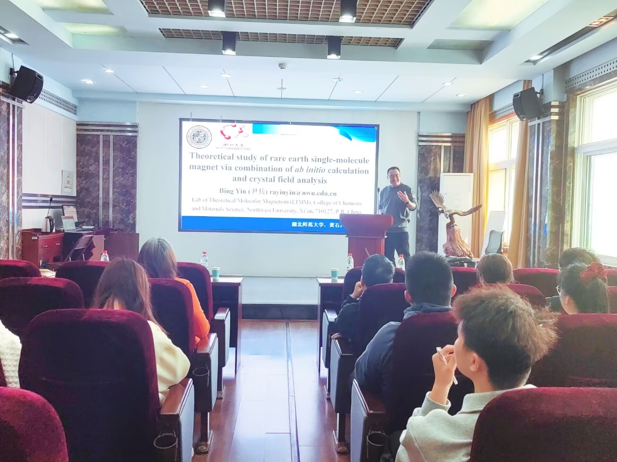 3月27日,西北大学化学与材料科学学院尹兵副教授应邀莅临公司开展学术交流,在重点实验室学术报告厅作题为《电子结构计算结合晶体场模型的稀土镧系单分子磁体的理论研究》的学术报告。50余名师生到现场聆听。报告由经理殷国栋教授主持。