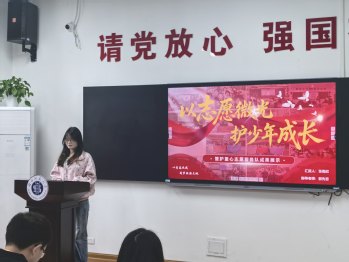 在分享环节,五位同学依次登台,从不同维度呈现了社会实践的丰硕成果与深刻思考。詹欣怡动情讲述了星火筑梦实践队暑期支教的点滴,在乡村孩子们质朴的笑容中感悟奉献的真谛;齐鑫雨与聂晴分别聚焦女老员工卫生巾安全标准的认知现状与高校男生的对此议题的看法,以调研数据回应现实关切,展现了敏锐的问题意识与社会洞察力;张雨欣通过管护童心志愿服务队的成长故事,诠释了陪伴与守护的双向奔赴;胡佳欣则从理论高度剖析志愿服务对价值观内化的深层影响,探讨实践教育在青年成长中的独特价值。五段分享或温情、或理性,既有脚踏实地的躬身实践,亦有仰望星空的理论求索,共同勾勒出bv1946伟德学子在社会大课堂中锤炼本领、涵养情怀的生动图景。