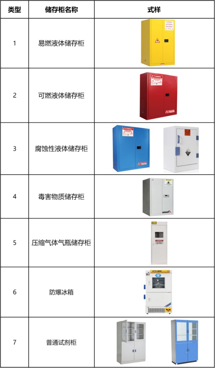 实验室常见的几种化学品储存柜详见表1。